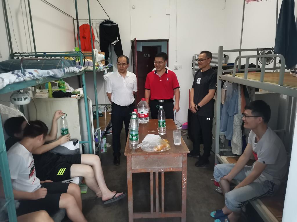 在走访学生宿舍过程中,刘东康书记向同学们转达了学院领导和老师们对留校学生的关心,并与同学们进行深入交流,了解同学们在留校期间的考研准备、毕业实验和实习安排情况,询问学生的住宿、用餐、用水等生活状况,并对留校期间的各类安全事项及宿舍安全作了提醒,嘱咐同学们提高自我防范意识,做好防暑降温,时刻保持手机畅通,经常与家人联系,有任何问题和困难要及时与辅导员老师联系。随后,刘东康书记一行还就宿舍的环境卫生和安全状况进行查看,希望留校同学们遵守学校纪律,在假期安全和生活方面做到相互关照。为确保留校学生假期安全,刘东康书记要求学生科长和辅导员加强信息沟通和管理,确保对学生在校情况及时了解,保证同学们度过平安充实的假期。