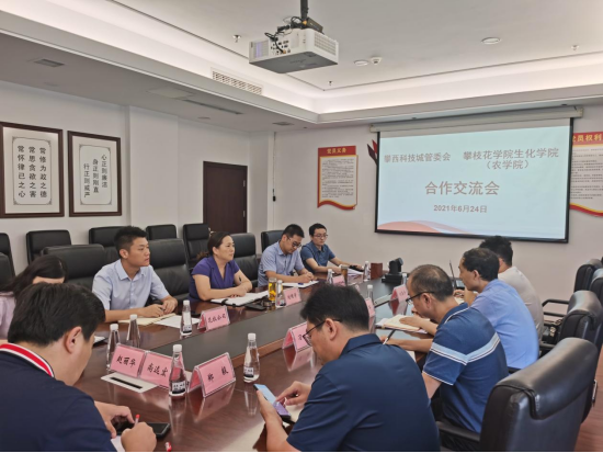 生化学院行政负责人详细介绍了生化学院(农学院)的发展情况,指出生化学院(农学院)具有实力较强的智力团队,有丰富的科研成果,在农业领域有良好的研究基础,攀西科技城软硬件条件可为学院农业学科的发展、科研成果的转化实施提供良好平台,希望双方能够进一步加强交流沟通,尽快促成成果转化落地,为攀西科技城发展贡献攀大力量。