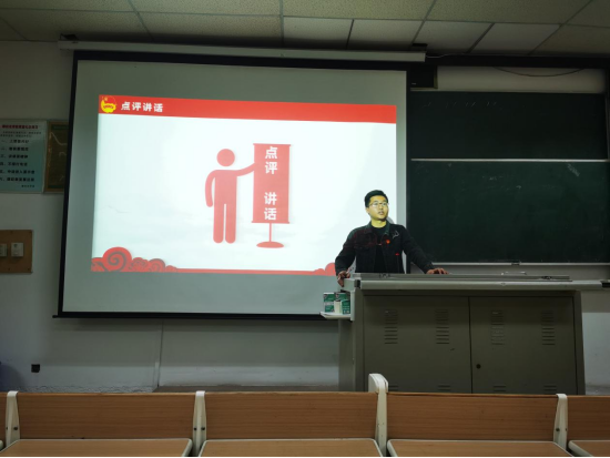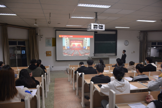 会上,20级化工2班团支书陈宇带领全体成员齐唱团歌、观看“二十大报告金句”视频、再次学习党的二十大精神。他表示,大家要牢记习近平总书记寄语:“青年强,则国家强。当代中国青年生逢其时,施展才干的舞台无比广阔,实现梦想的前景无比光明。广大青年要坚定不移听党话、跟党走,怀抱梦想又脚踏实地,敢想敢为又善作善成,立志做有理想、敢担当、能吃苦、肯奋斗的新时代好青年,让青春在全面建设社会主义现代化国家的火热实践中绽放绚丽之花!”