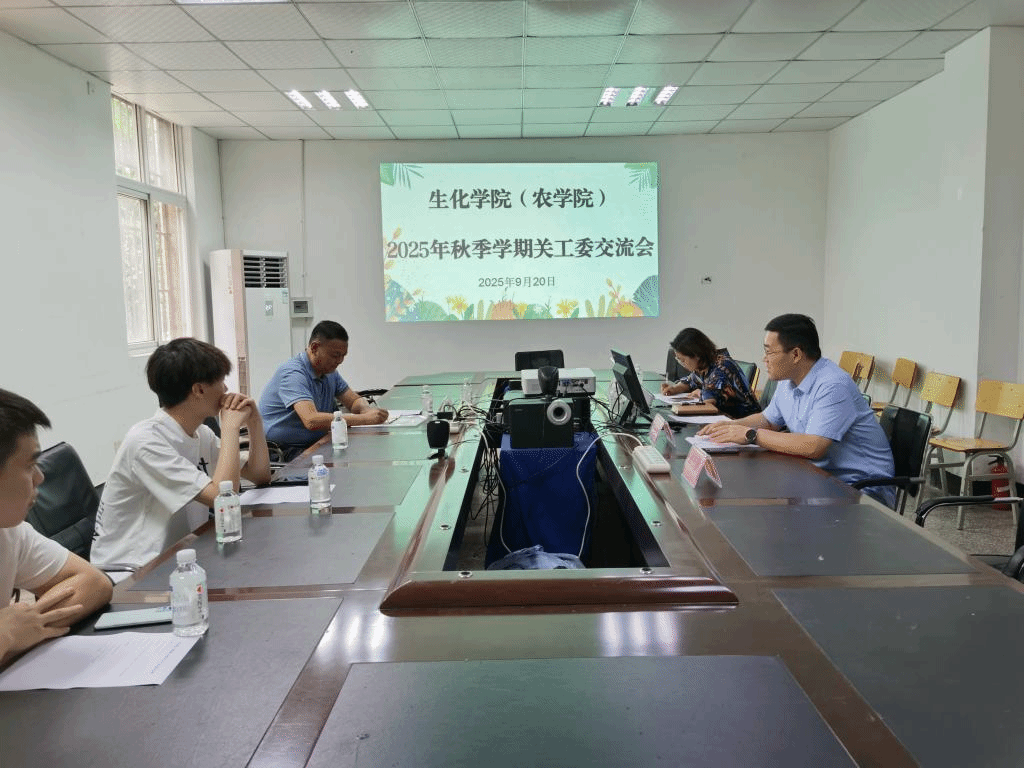 为进一步推进关工委工作走深走实,明确工作方向与重点,91914:00,生化学院(农学院)在生化楼二楼会议室召开2025年关工委交流会议。关工委老同志王超、学院党委副书记兼纪委书记巩元勇、学生科负责人莫伟豪、团委书记张子萱出席会议,会议由张子萱主持。