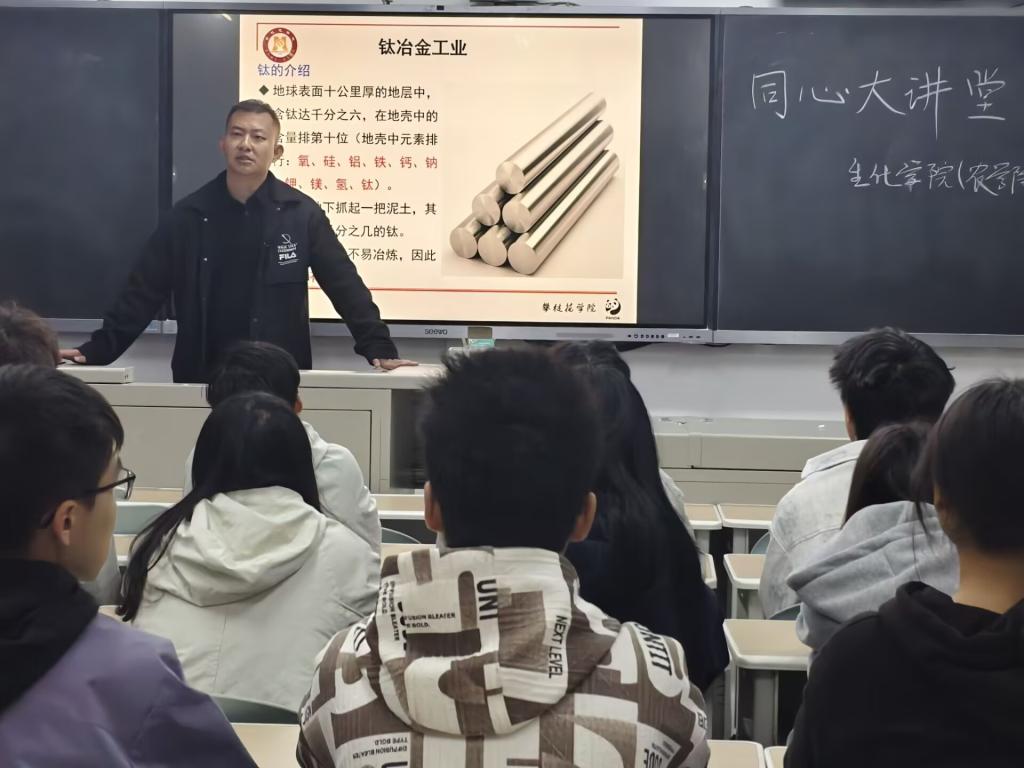 此次 “同心大讲堂” 是生化学院(农学院)统战工作的重要实践举措,通过发挥民主党派社员的专业特长,将统战资源转化为育人资源、发展资源,不仅深化了学生对钒钛工业全链条的理解,增强了其专业认同感与社会责任感,更凸显了统一战线凝聚人心、汇聚力量的重要作用。未来,学院将持续擦亮“同心大讲堂” 统战工作品牌,进一步加强与各民主党派的沟通协作,搭建更多学术交流与思想引领平台,推动统战工作与教学科研、人才培养、社会服务协同发展,为学院高质量发展凝聚起更广泛的智慧与力量。