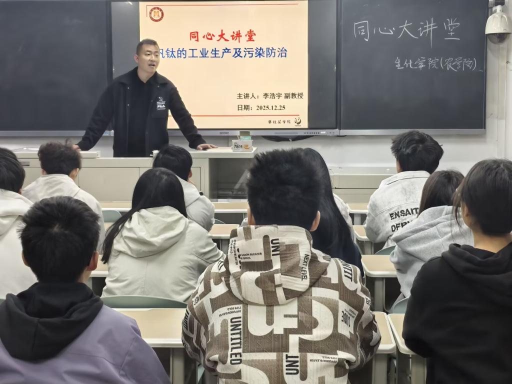 为深入贯彻落实统战工作要求,充分发挥民主党派人才智力优势,搭建 “同心向党、服务育人” 的交流平台,12 月 25 日下午,生化学院(农学院)在第一教学楼成功举办 “同心大讲堂”专题讲座。学院九三学社社委、副教授、博士李浩宇受邀担任主讲人,以 “钒钛的工业生产及污染防治” 为题,为师生带来一场兼具专业性与科普性的学术盛宴,推动统战工作与学科建设、人才培养深度融合。