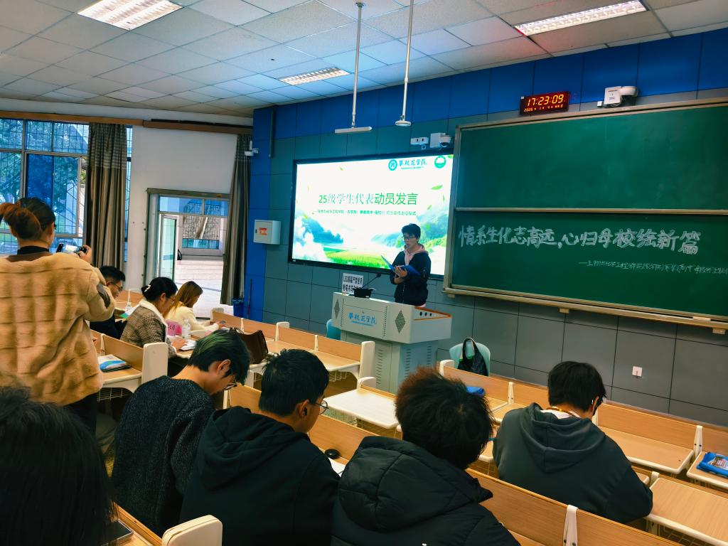 为号召学生于寒假期间返回高中母校,交流大学学习生活心得,宣传我校办学成果,在母校与大学之间有效构建情感联结与信息沟通的桥梁。2025年1月4日,我院于志学楼1-116教室隆重举行以“情系生化志高远,心归母校绘新篇”为主题的寒假母校行活动出征仪式。学院党委副书记、纪委书记巩元勇老师,学生科负责人兼2023级辅导员莫伟豪老师,2024级辅导员田静老师,2025级辅导员苏炼老师出席本次活动,2025级各实践小队队长及队员共同参加。
