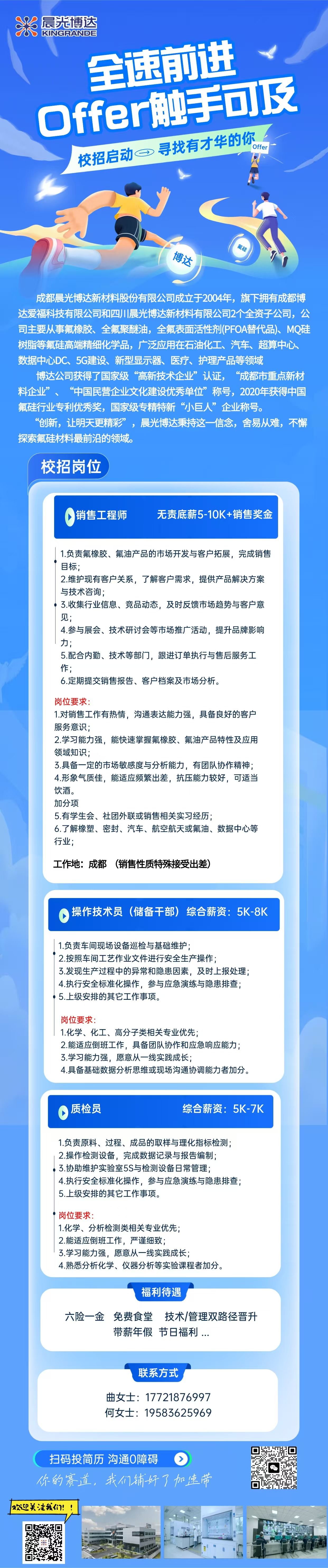 成都晨光博达新材料股份有限公司(FSE)主要从事冰芯®浸没式单相冷却液、Fluocon®全氟聚醚油,Borflon® FSA全氟表面活性剂(PFOA替代品)、MQ硅树脂等氟硅高端精细化学品、Fluoron®氟橡胶、氟硅橡胶和全氟醚橡胶的研发和生产。 经过20年的不懈努力,公司已经成长为国内领先的氟橡胶预混胶和混炼胶供应商。氟橡胶系列产品主要服务于汽车工业、新能源、石油、化工和可穿戴电子产品。多年来的研发创新,晨光博达厚积薄发,在中国第一家率先研发做出环保型含氟表面活性剂(PFOA替代品FSA系列),并成功的开发出全氟聚醚油(PFPE)和有机硅MQ硅树脂等系列的氟硅高端精细化学品,全面进军超算中心、数据中心IDC、5G建设、新型显示器、医疗、护理产品和新能源等全新领域。 质量是企业的生命。博达公司顺利通过了ISO9001:2015和IATF16949:2016质量体系认证。